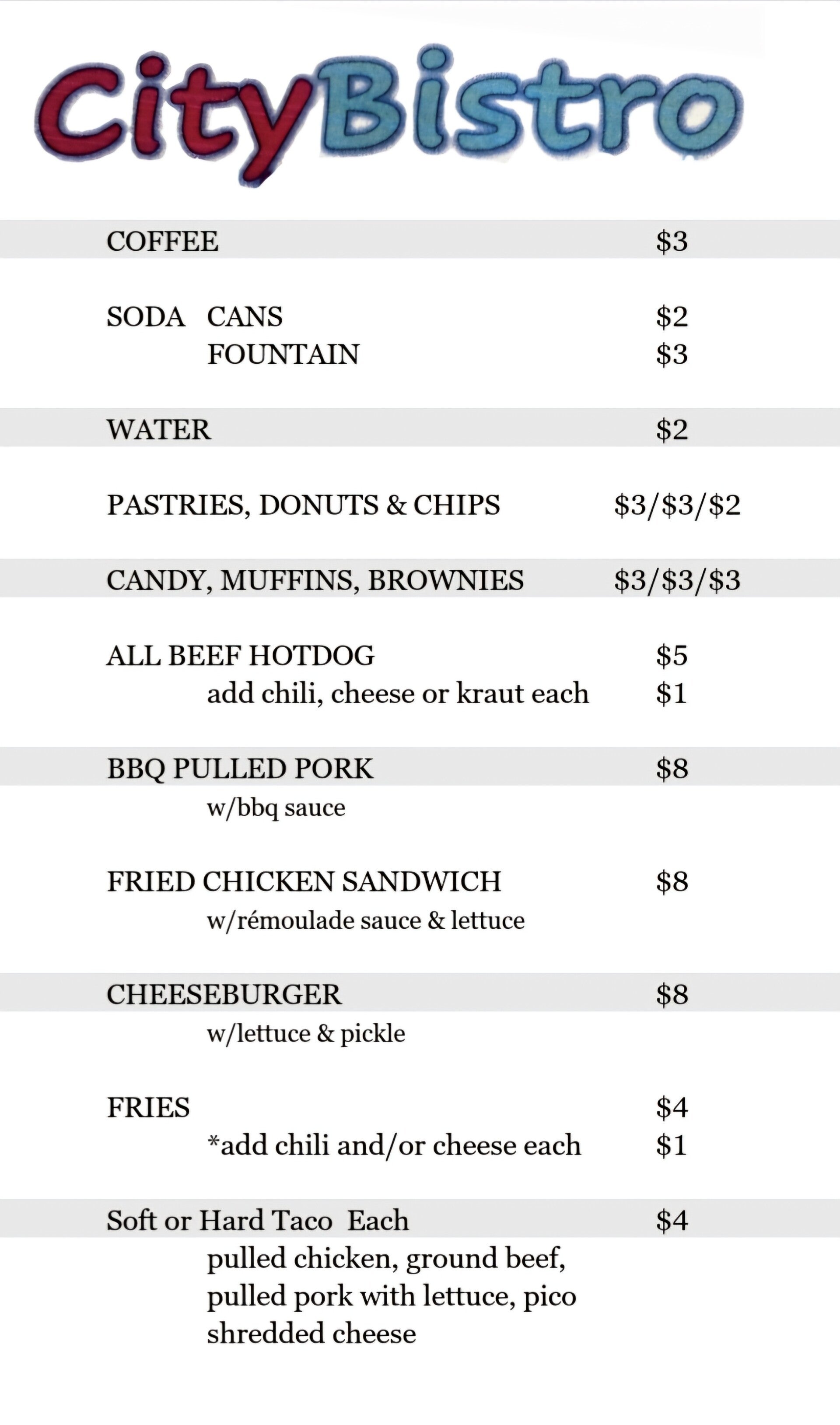 Indulge in our top 3 most popular items, each a platinum award winner in 14 categories! Savor the taste of our Cheeseburger, featuring a juicy patty, american cheese, lettuce and a pickle slice! Or our all beef hotdog! Don't forget our fried chicken sandwich! Try our perfectly cooked fries or our pulled pork bar b que sandwich! And save room to try our pastries, cookies or brownies!